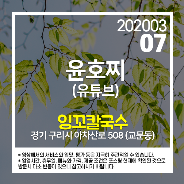 2020년 3월 7일 유튜브 윤호찌 채널에 소개된 곳입니다.