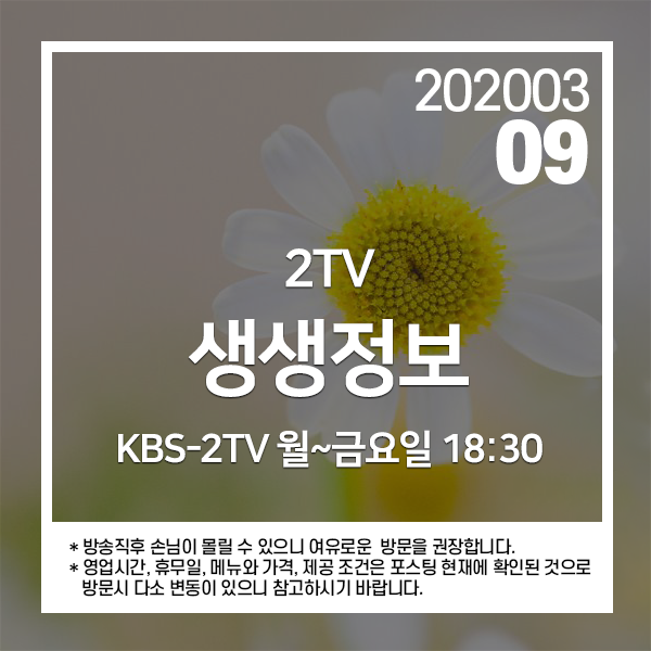 2020년 3월 9일 KBS-2TV 생생정보 1020회에 소개된 곳입니다.