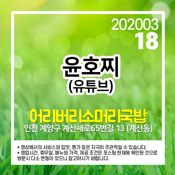 2020년 3월 16일 유튜브 윤호찌 채널에 소개된 곳입니다.