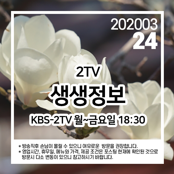 2020년 3월 24일 KBS-2TV 생생정보 1031회에 소개된 곳입니다.