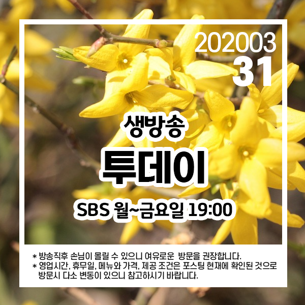2020년 3월 31일 SBS 생방송 투데이 2542회에 소개된 곳입니다.