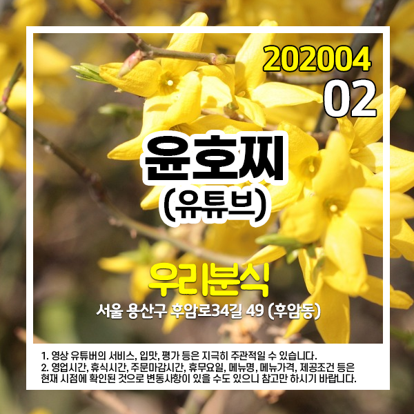 2020년 4월 2일 유튜브 윤호찌 채널에 소개된 곳입니다.