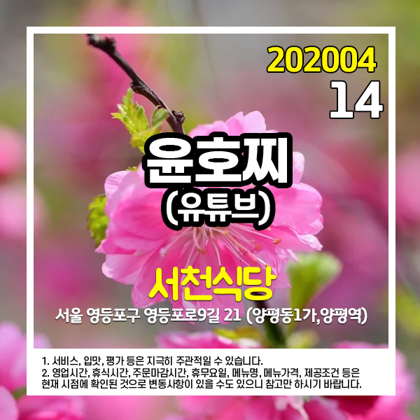 2020년 4월 14일 유튜브 윤호찌 채널에 소개된 곳입니다.