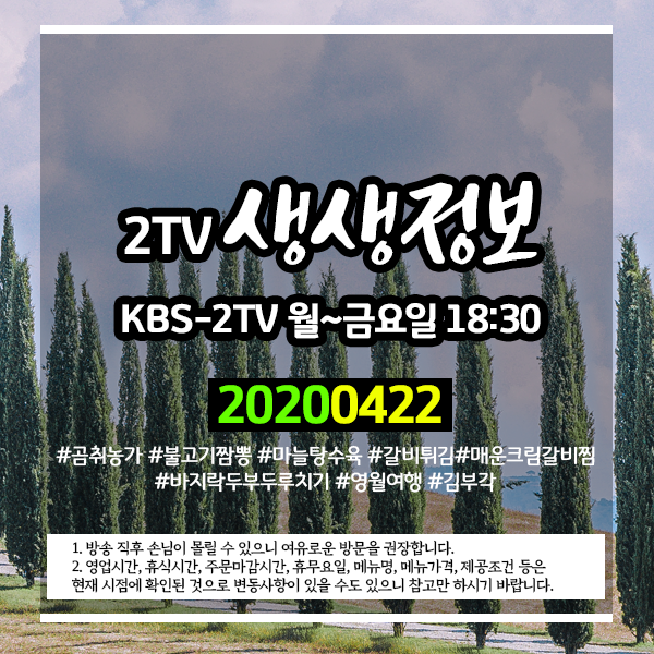 2020년 4월 22일 KBS-2TV 생생정보 1052회에 소개된 곳입니다.