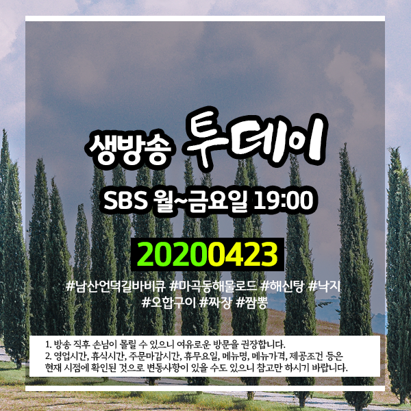 2020년 4월 23일 SBS 생방송 투데이 2558회에 소개된 곳입니다.