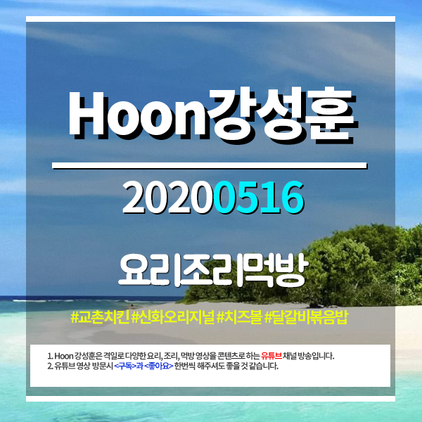 Hoon강성훈(유튜브) 20200516 #교촌치킨 #신화오리지널 #치즈볼 #닭갈비볶음밥