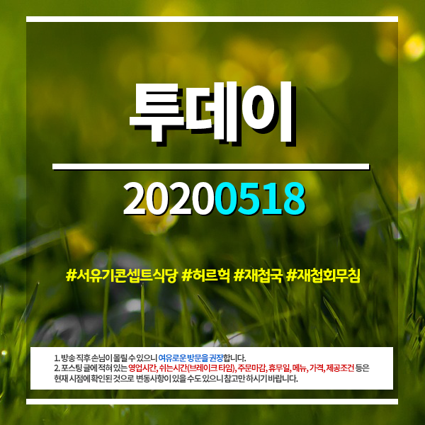 투데이 20200518 (2575) #서유기콘셉트식당 #허르헉 #재첩국 #재첩회무침
