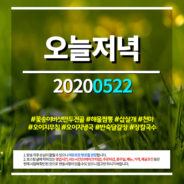 | 오늘저녁 20200521 (1321) #해물갈비전골 #수육두부정식 #섬진강 #재첩 (0) | 2020.05.21 |