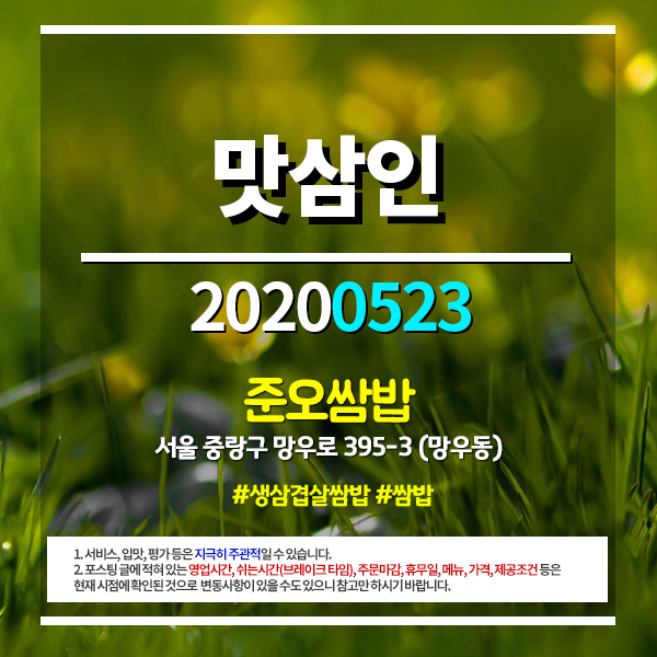맛삼인(유튜브) 20200523 #망우동 #망우역 #준오쌈밥 #생삼겹살쌈밥 #쌈밥전문점