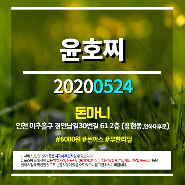 윤호찌(유튜브) 20200524 #인천인하대후문 #용현동 #돈마니 #6000원 #돈까스 #무한리필