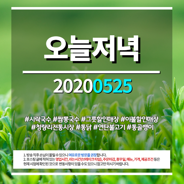 | 오늘저녁 20200527 #방송결방안내 (0) | 2020.05.27 |