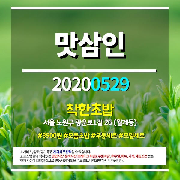 맛삼인(유튜브) 20200529 #서울 #월계동 #광운대 #착한초밥 #3900원 #모듬초밥 #우동세트 #모밀세트