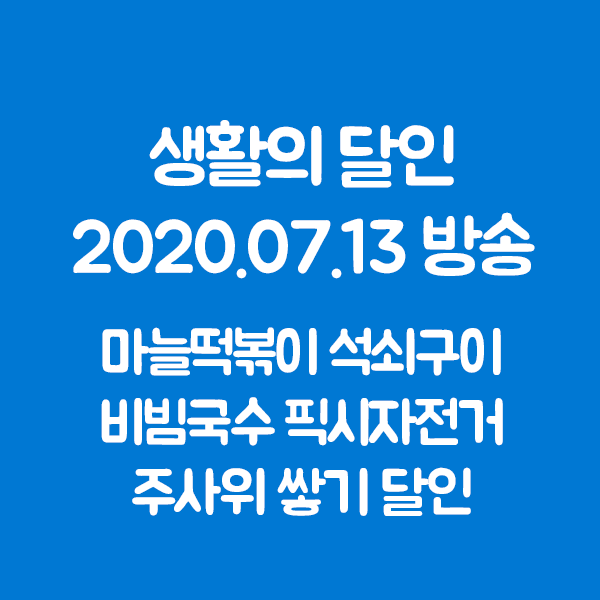 | 생활의달인 은둔식달 문경 석쇠불고기, 천안 마늘떡볶이, 자전거 달인, 주사위 쌓기 달인, 고양 비빔국수 달인 (0) | 2020.07.20 |