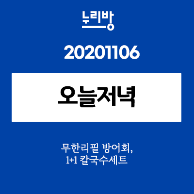 오늘저녁 무한리필 방어회 (광주 북구) 1+1칼국수세트 (서울 신림역)