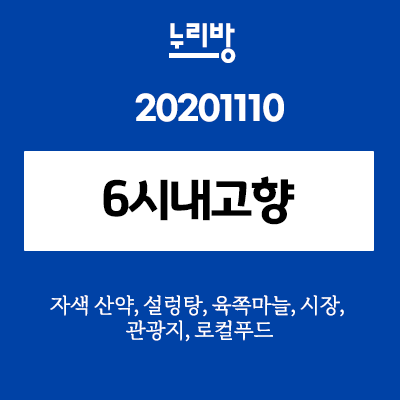 6시내고향 자색 산약 (경북 영주) 설렁탕 (경기 안성) 육쪽마늘,시장,관광지 (충남 서산) 로컬푸드 (경기 가평)