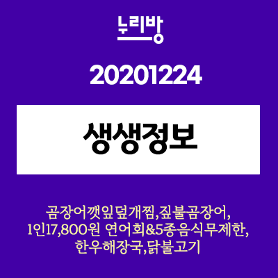 생생정보 곰장어깻잎덮개찜 (부산 자갈치역) 짚불곰장어 (부산 기장 송정역) 1인17,800 연어회,5종음식무제한 (서울 신촌역) 한우해장국 (인천 숭의역) 닭불고기 (광주)