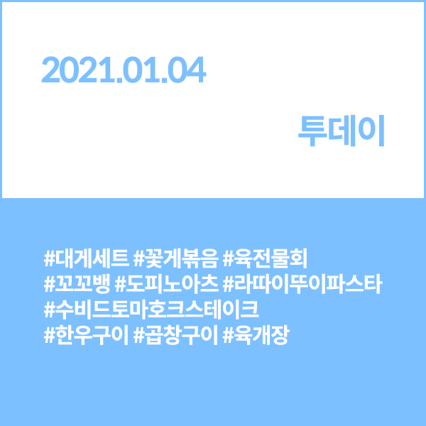 투데이 20210104 역전의 명샷 - 대게세트,꽃게볶음,육전물회 (인천 소래포구역) 꼬꼬뱅&도피노아츠 (서울 홍대입구역) 라따뚜이 파스타&수비드토마호크스테이크 (서울 서대문역)