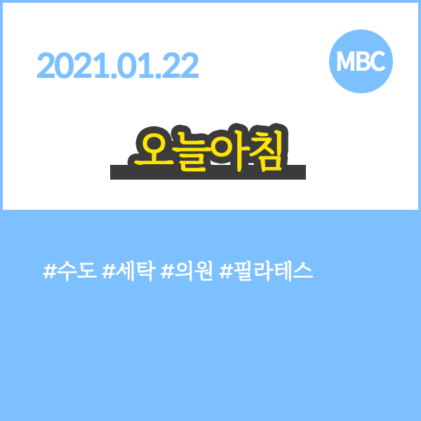 오늘아침 20210122 방송정보 수도, 세탁, 의원, 필라테스
