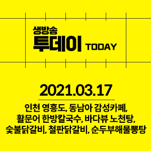 2021년 3월 17일 생방송 투데이 활문어한방칼국수 (인천 영흥도) 숯불닭갈비 (서울 성신여대입구역) 철판닭갈비 (서울 마곡역) 순두부해물뽕탕 (부산 재송동,재송역)