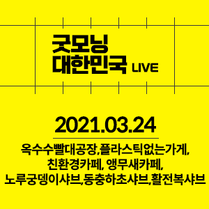 2021년 3월 24일 굿모닝 대한민국 LIVE 옥수수빨대공장,플라스틱없는가게,친환경카페 / 앵무새카페 (전북 전주) 노루궁뎅이샤브,동충하초샤브,활전복샤브 (충북 청주)
