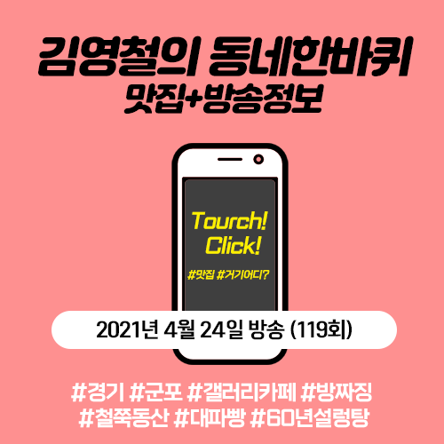 2021년 4월 24일 김영철의 동네 한 바퀴 (119) 싱그럽다 수리산 아랫동네 - 경기 군포 (추억을 채색하는 화가, 방짜 징, 철쭉동산, 대파 빵 부부, 60년 설렁탕)