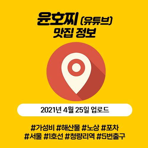 2021년 4월 25일 윤호찌 (유튜브) 산지직송 싱싱한 해산물 도매 가격으로 주는 곳 - 철수네 포차 (서울 1호선 청량리역 5번 출구 뒷편)
