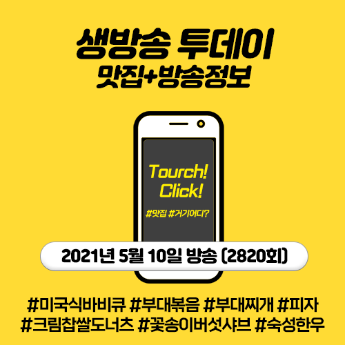 2021년 5월 10일 생방송 투데이 - 미국식 바비큐,부대볶음,부대찌개,피자,크림찹쌀도너츠(동두천) / 꽃송이버섯샤브,꽃송이튀김(하남 검단산) / 진공숙성한우,건조숙성한우