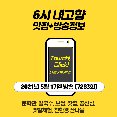 20210517 6시 내고향 (7283) 문학관, 칼국수, 보쌈, 찻집, 공산성, 갯벌체험, 친환경 산나물