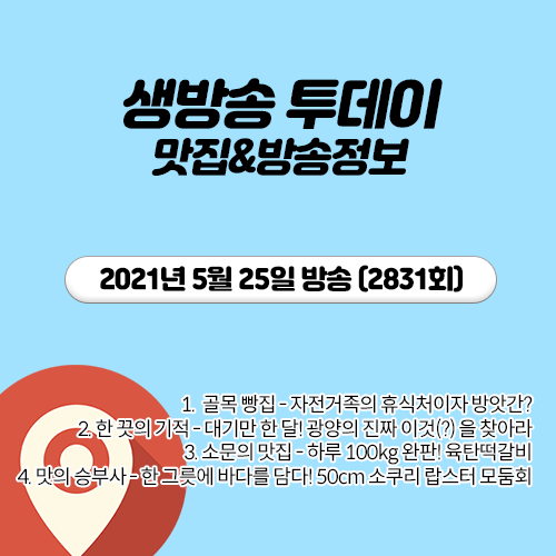 20210525 생방송 투데이 (2831) 자전거족의 휴식처이자 방앗간? 커피, 음료, 빵, 면포가스테라 / 하루 100kg 완판! 육탄떡갈비 / 50cm 소쿠리 랍스터 모둠회