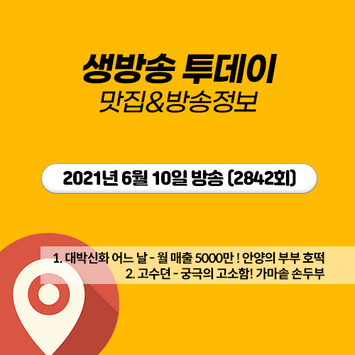 20210610 생방송 투데이 (2842) 월 매출 5000만 원! 안양의 부부 호떡 / 궁극의 고소함! 가마솥 손두부