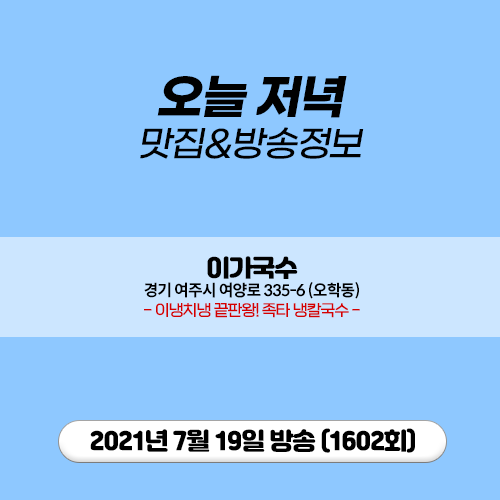 20210719 오늘 저녁 (1602) 국수왕 - 이냉치냉 끝판왕! 경기 여주 족타 냉칼국수