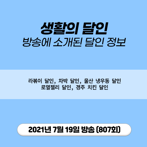 20210719 생활의 달인 (807) 라볶이 달인, 차박 달인, 울산 냉우동 달인, 로열젤리 달인, 경주 치킨 달인