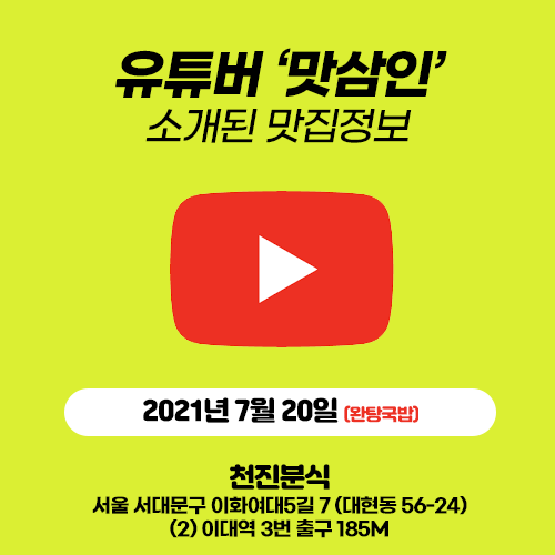 20210720 유튜버 '맛삼인' 술 안먹어도 해장되는 완탕국밥 - 천진분식 (서울 이대역, 이화여대5길, 대현동)