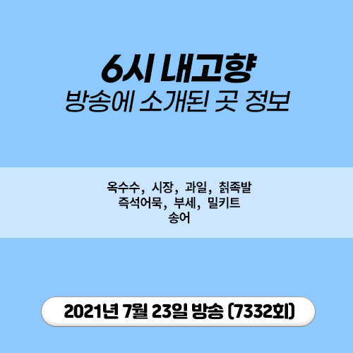20210723 6시 내고향 (7332) 옥수수, 시장, 과일, 칡족발, 즉석어묵, 부세, 밀키트, 송어