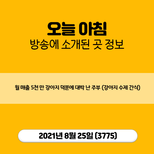 20210825 오늘 아침 (3775) 주부의 반란 - 월 매출 5천 만 강아지 덕분에 대박 난 주부 (강아지 수제 간식)