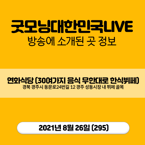 20210826 굿모닝 대한민국 LIVE (295) 맛있는 인생 - 30여가지 음식 무한대로 먹는 집 (경북 경주 성동시장 뷔페골목)