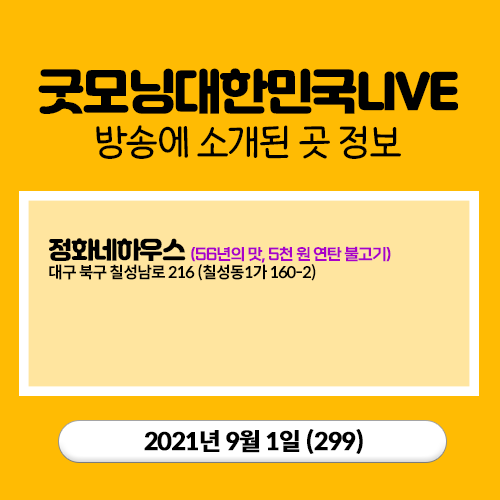 20210901 굿모닝 대한민국 LIVE (299) 56년의 맛, 5천 원 연탄 불고기 (대구 칠성시장역), 쓰레기 가져가면 선물 주는 상점 (서울 서울역 4층 옥상정원)