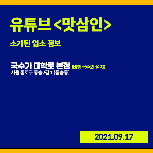 20210917 유튜브 <맛삼인> 손현주,박신양 등 톱스타들도 인정한 비빔국수의 성지! - 국수가 대학로 본점 (서울 동숭동,대학로,혜화역)