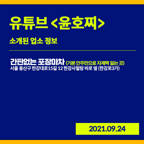 20210924 유튜브 <윤호찌> 기본 안주만으로 자제력 잃는 곳 - 간판없는 포장마차 (서울 한강로3가, 용산역)