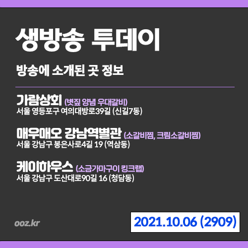 20211006 생방송 투데이 (2909) 신안 병풍도 (짱뚱어,망둥어잡이,새우양식,주낙낙지), 우대갈비,소갈비찜, 소금가마구이 킹크랩, 가을 꽃게