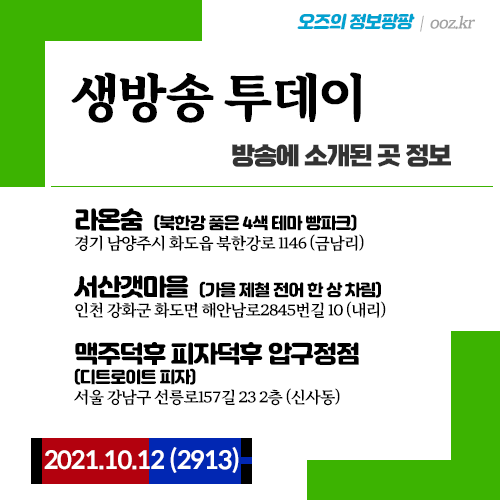 20211012 생방송 투데이 (2913) 북한강 품은 4색 테마 빵파크, 하루 판매량 3만 개! 전국구 시장만두의 정체는?, 제철 전어 한 상 차림, 압구정 디트로이트 피자