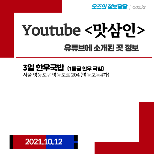 20211012 유튜브 <맛삼인> 한번 먹고 잊을 수 없는 1등급 한우 국밥! 1주일 내내 계속 생각납니다! 또 먹고 싶네요! - 3일 한우국밥 (서울 영등포로, 영등포시장역)