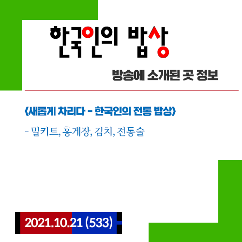 20211021 한국인의 밥상 (533) 새롭게 차리다 - 한국인의 전통 밥상 (밀키트, 홍게장, 김치, 전통술)