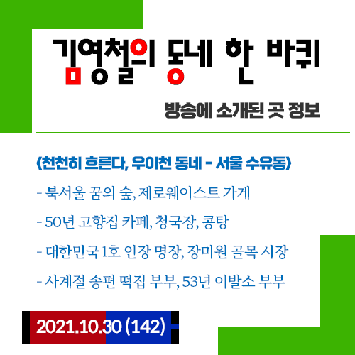 20211030 김영철의 동네 한 바퀴 (142) 천천히 흐른다, 우이천 동네 - 서울 수유동