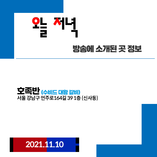 오늘 저녁 11월10일 고기왕 수비드 대왕 갈비 손맛,오지네 가을 청태장 밥상