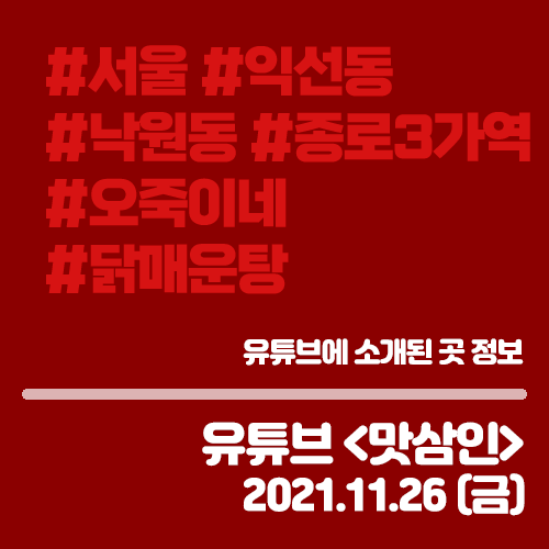 유튜브 <맛삼인> 11월26일 닭매운탕 맛집 오죽이네 (서울 익선동,낙원동,종로3가역)