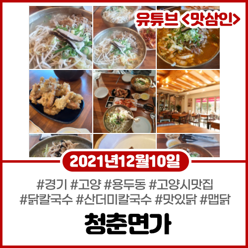 유튜브 <맛삼인> 12월10일 닭칼국수 산더미칼국수 맛있닭 맵닭 청춘면가 (경기 고양 용두동)