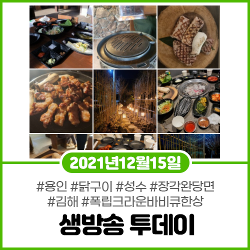 생방송 투데이 12월15일 오천만의 메뉴 닭구이 (용인 보정) 장각 완당면 (서울 자양동 건대입구역) 리얼 맛집 폭립크라운 바비큐 한상 (김해)