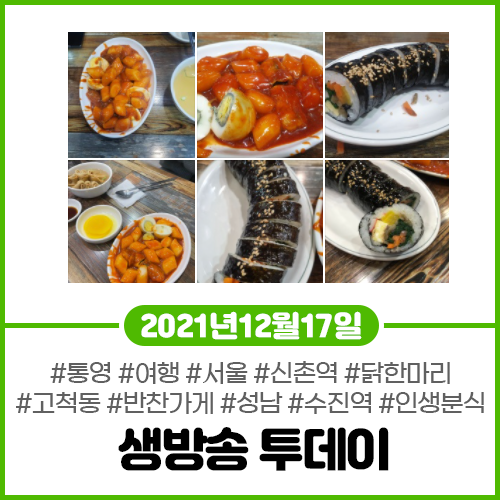 생방송 투데이 12월17일 백원빵 인어공주빵 불에굽는아이스크림 빼떼기죽 닭한마리 물메기탕 (통영) (서울 신촌역) 우리동네 반찬가게 (서울 고척동) 인생분식 (성남 수진역)