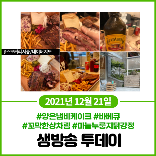 생방송 투데이 12월21일 양은 냄비 케이크(인천 부평/부평역) 스페어립 풀드포크 립팁 바베큐(양평) 꼬막한상차림(서울 상암) 마늘 누룽지 닭강정(서울 광장시장/종로5가역)